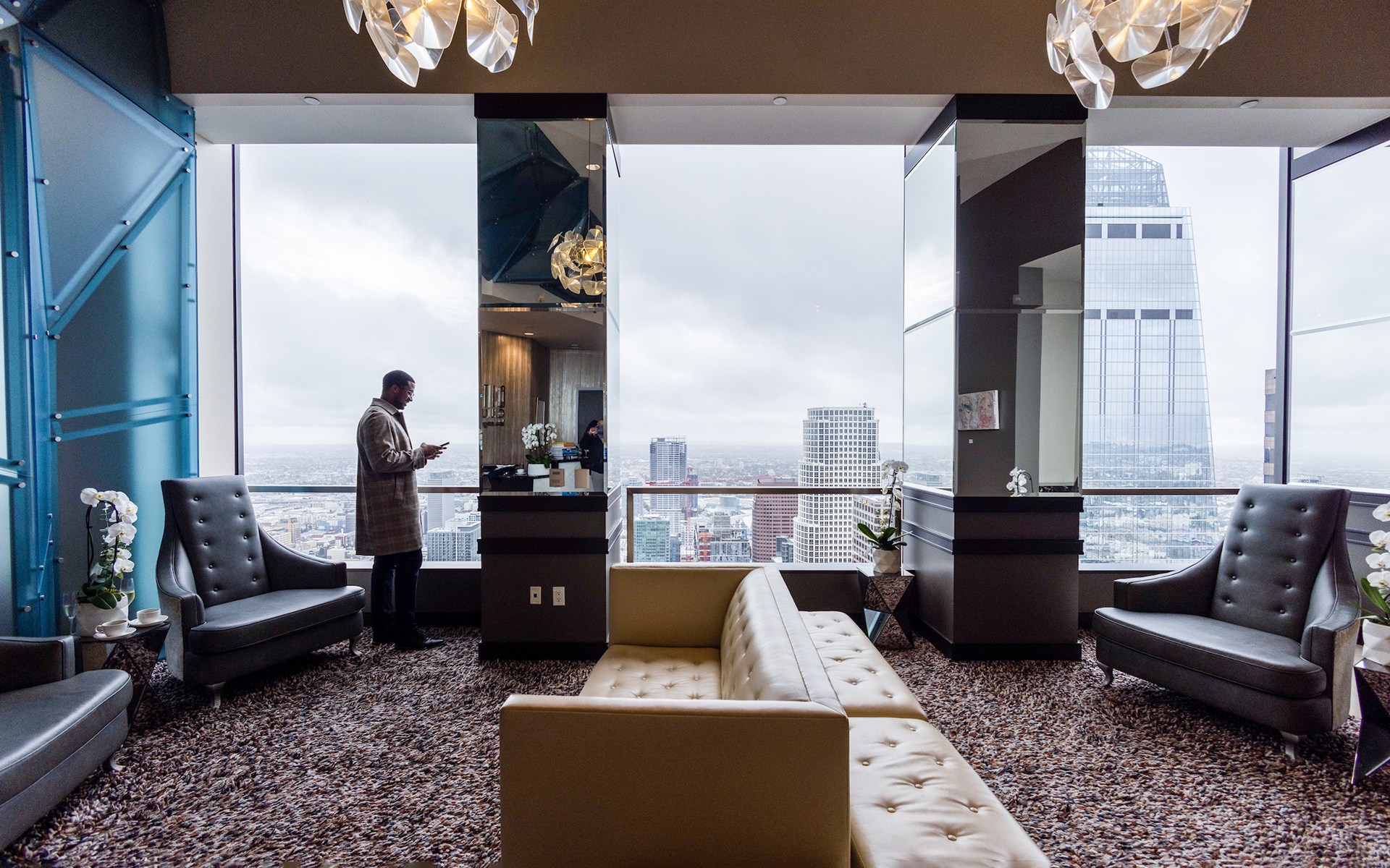 - Spectacular floor-to-ceiling views of the dynamic cityscape and soothing Pacific